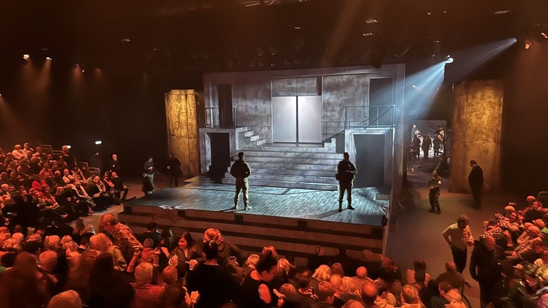 Finally, there’s the violent confrontation at the end, the warriors dressed in contemporary body armour. So often this play is let down by the sight of actors swiping half-heartedly at each other with rapiers, but the deadly looking machetes brandished in this confrontation are swung around with enough abandon to make me flinch in my seat. All in all, this is a faultless production and the mere glimpses I receive of its atmospheric setting make me wish I’d tried harder to hunt down tickets to the original performance.