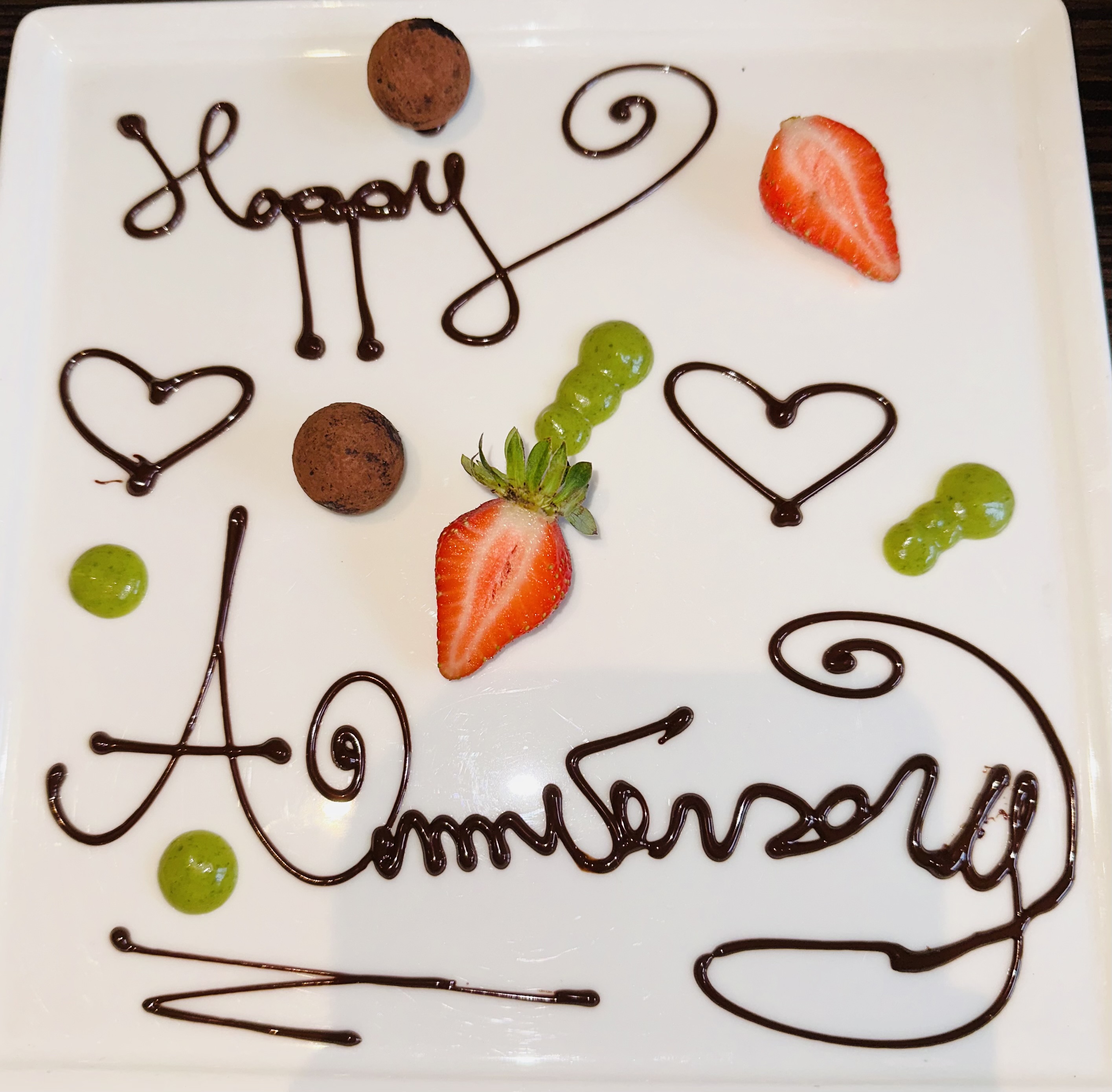 A couple of ‘Happy Anniversary’ petit fours round off the evening nicely, and we happily clink our glasses of Appletise in celebration of a decade well spent.