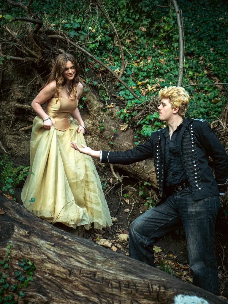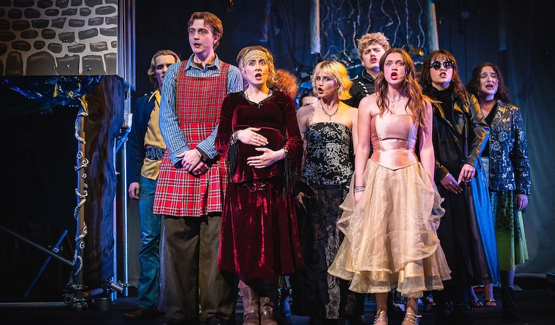Co-directed by Tai Remus Elliot and Hunter King, Into the Woods brings together Little Red (Richeldis Brosnan), Cinderella (Maia Jones), Jack Beanstalk (Reuben Reilly) and Rapunzel (Aarya Gambhir). The named-for-a-cabbage, famed-for-her-hair princess plays a minor role, but her baker brother and his wife are central to the plot, as is the witch who keeps her imprisoned in a tower. Like her mother-in-law before her, the baker’s wife (Rosie Wilkinson) is desperate for a child – and just as ready to do a deal with the green-fingered witch who lives next door (Lauren Green). And so the baker (Shaun Hamilton) is duly dispatched to the woods, where he must find the four items the hag requires: a cow as white as milk, a cape as red as blood, some hair as yellow as corn, and a slipper as pure as gold. No prizes for guessing which characters are in possession of said treasures.